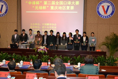 本次口译大赛由中国翻译协会主办,团中央学校部指导,四川外语学院承办, “元培世纪(北京)教育科技有限公司”冠名。比赛分为两个环节:第一轮为英译汉,主题为“英国领导人在低碳政策与商业研讨会上关于气候变化的讲话”;第二轮为汉译英,主题为“中国文化产业所面临的变化”。两项成绩相加即为选手的总成绩。来自西南大学、重庆大学、、四川外语学院、重庆理工大学、重庆师范大学等各大高校的31名参赛选手同台竞技,比赛气氛十分紧张,在历时4个小时的激烈的角逐后,公司张梦同学以缜密的思维、敏捷的反应、扎实的口译知识,沉着冷静的应答在众多选手中脱颖而出,以远高于其他选手的分数夺得桂冠,充分展示了明陞m88官方网站学子的良好英语水平和精神风貌。比赛结束后,张鹏老师作为评委,对选手们的表现进行了精彩的点评,她用实例举证,指出了比赛过程中选手们的优点与不足,让在场的选手以及同学们受益匪浅。