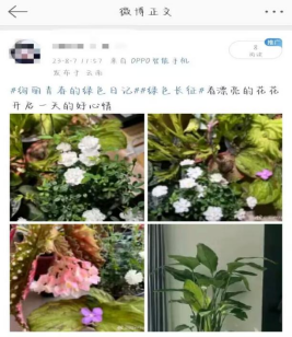 团队成员还通过“线上+线下”的方式参与第十三届全国青少年绿植领养活动,通过参与“#绿色长征”、“#绿植领养”、“#绚丽青春的绿色日记”等微博话题讨论,用图文等作品记录植物成长,以实际行动加入植绿护绿爱绿之列,为建设美丽中国贡献自己的一份力量。