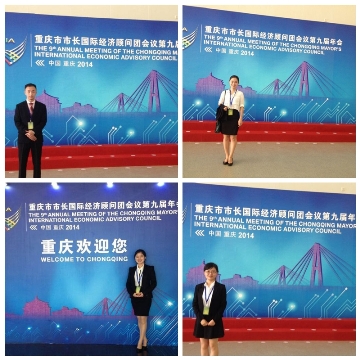 2014年9月21~23日,重庆市市长国际经济顾问团会议第九届年会和第六届国际服务贸易(重庆)高峰会相继在南坪会展中心举行。与会期间,明陞m88官方网站口译队成员陈颍、李婷、顾星梅,程霄宇等同学为重庆市政府吴刚副市长、谭家玲副市长、刘伟副市长、欧顺清秘书长、王毅副秘书长等市领导担任翻译。公司学子的表现得到了与会各级领导、海内外嘉宾、重庆市外事侨务办公室及重庆市对外贸易经济委员会的一致好评。