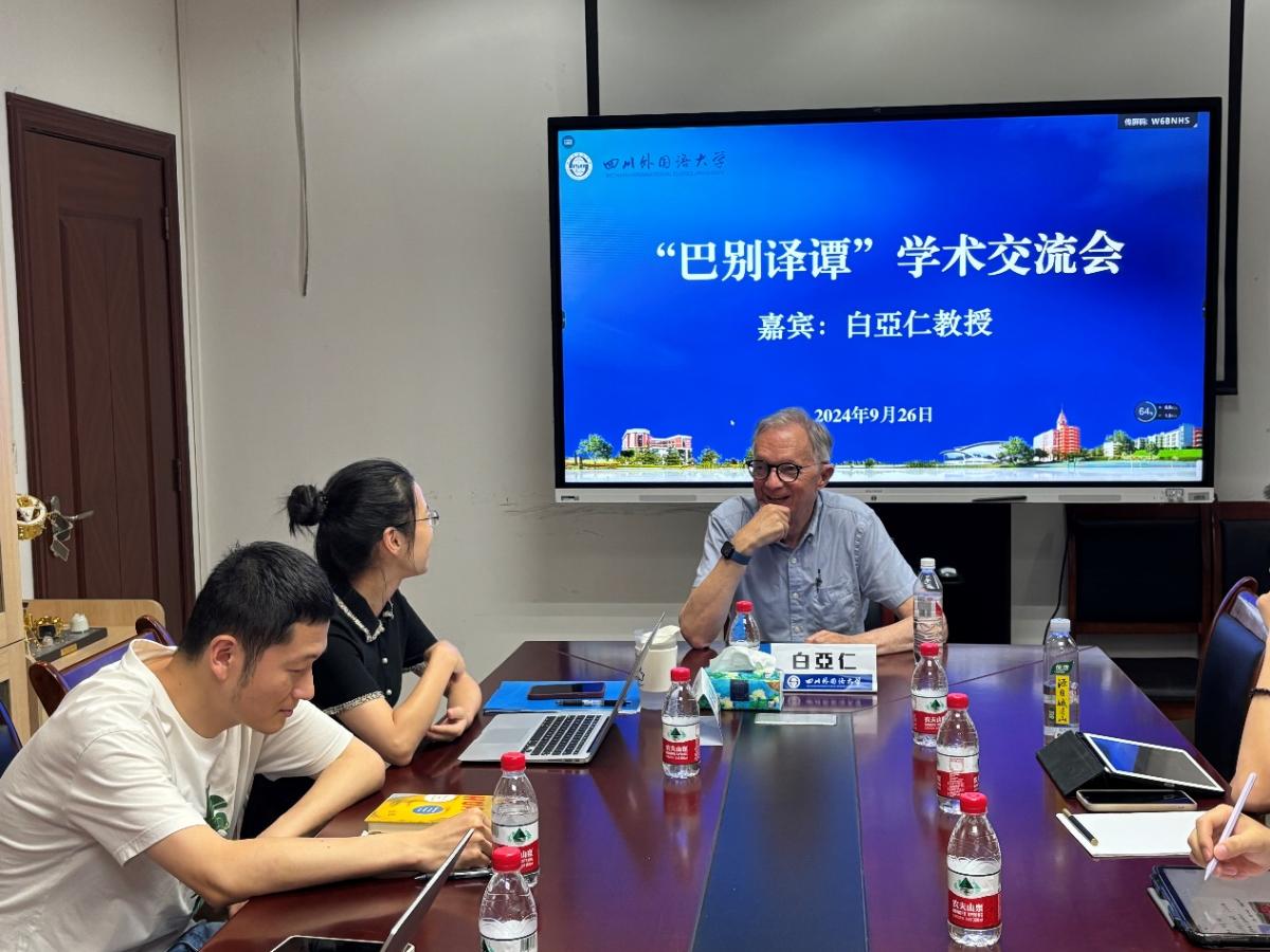 9月26日下午,著名汉学家、翻译家、美国波莫纳大学亚洲语言文学系荣休教授白亞仁(Allan H. Barr)做客明陞m88官方网站“巴别译谭”学术交流会,围绕“翻译实践与学术研究”与师生展开深入探讨。本次交流会由博士生葛玉娇主持。