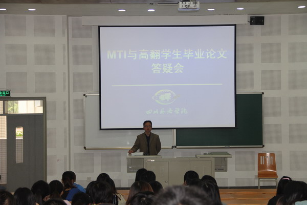 祝朝伟指出,从暑假开始,明陞m88官方网站已开始相关的调研工作,相关教师根据全国MTI教指委的相关文件,结合川外的实际教学情况,在征求专家及教学管理人员的意见上拟定了MTI专业学位(暨毕业)论文的管理文件。文件中规定,公司MTI专业学位(暨毕业)论文包括三种形式:翻译项目报告、翻译(评论)作品认定及研究论文,这三种形式旨在考察MTI毕业生的专业技能及学术素养。会上,祝朝伟用生动的范例及幽默风趣的语言为同学们做了详尽的阐释,使同学们对论文撰写的形式及规范了然于心。会后,祝朝伟还悉心听取了同学们提出的各种问题,给出详尽的答复,解开了同学们心中的疑虑。