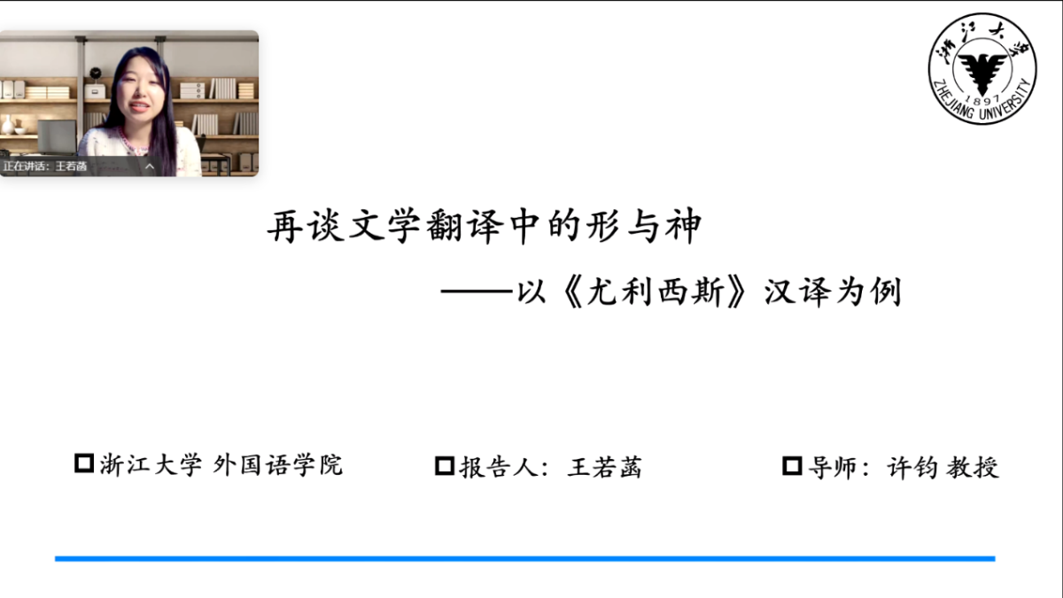 2025年4月25日,翻译协会特别邀请浙江大学外国语学院博士生王若菡开设讲座,主题为“再谈文学翻译中的形与神”。翻译协会会长赵新雷主持讲座。