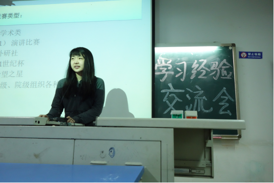 “人生前期越嫌麻烦,越懒得学,后来就越可能错过让你心动的人或事,错过新风景。”2013级员工谢小莉作为第一位分享学习经验的嘉宾,以蔡康永先生的一段话引出她讲话的第一点:目标。她引导同学们在大学里树立个人目标,时刻把握机会,培养各方面的能力。此外,她又以培根“读书以怡情、傅彩、长才”的观点引导同学们多读书,还以赠书的方式鼓励学弟学妹们培养阅读的好习惯。最后,她分享了各种有助于学习的软件和网站,呼吁大家共同进步。