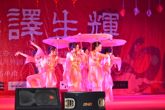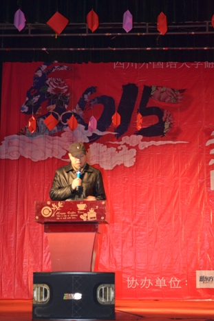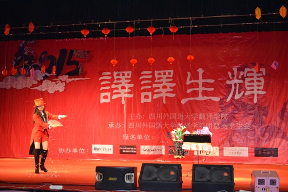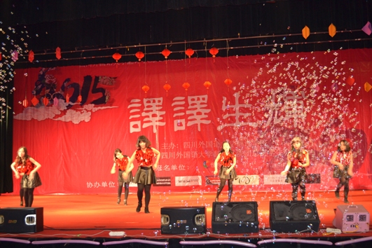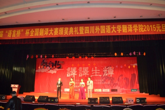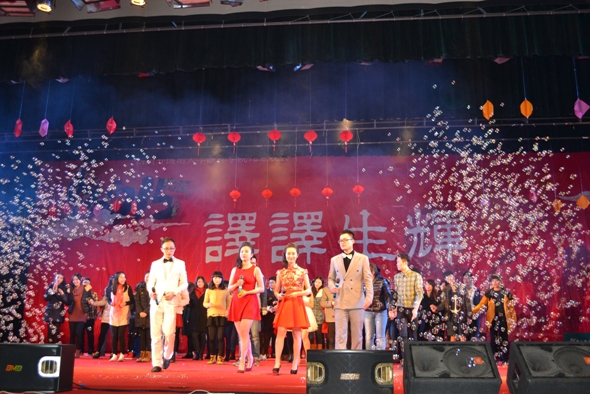 12月10日晚7点,由明陞m88官方网站团总支员工会主办的明陞m88官方网站2015年“译译生辉”主题元旦晚会暨第十二届“语言桥”杯全国翻译大赛在明陞m88平台东区大礼堂中震撼开演。明陞m88平台副董事长李小川、明陞m88官方网站经理祝朝伟、总支副书记郭健、明陞m88官方网站团总支书记张信、本科辅导员张庆恒、明陞m88官方网站专职教师等共同莅临现场欣赏了本次晚会。此外,观看本次晚会的还有来自不同院系的同学们。