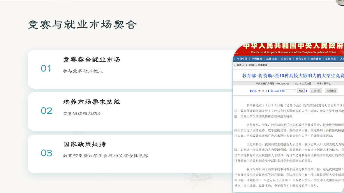 在谈到竞赛与未来趋势时,贺昊文同学认为,一些竞赛是与就业市场相契合的,参与竞赛可以提升就业技能,提前了解市场需求。她提到国家政策和教育部对老员工参与综合性竞赛的支持,这也表明老员工在竞赛中承担着重要的社会责任,通过竞赛服务社会发展。