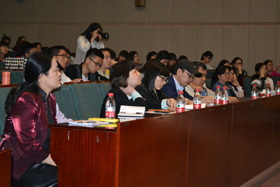 黄友义教授就他在近些年进行中译外时的体会和搜集到的一些中译外案例同广大师生进行分享和交流。黄教授表示现在中译外的重要性在日益提高,中国的翻译市场已经开始从输入型向翻译型转变,这与中国的国家经济形势变化和企业的国际化经营有很大的关系。不过他也表示虽然现在中译外的市场规模越来越大,但在实践上仍然存在或多或少的问题。接下来黄教授结合丰富的具体案例,从四个方面探讨了原因。首先,语言水平不足,也就是说译者本身没有足够的能力做好中译外,这种情况经常导致在公示语、政府部门的对外宣传材料和旅游文本的翻译当中出现错译。其次,文化知识缺乏。黄教授表示做翻译的人语言过关之后,文化知识又是一个非常大的挑战,尤其是政治上或者意识形态上的。第三,工作态度敷衍。有的译者拿过材料就直接进行翻译,遇到不懂单词,就直接照搬词典上的义项,而不是事先对材料进行通览,找出疑难的地方,在字典或者网上仔细检索相关资料,这样翻译出来的材料就会存在很多问题,经不起推敲。第四,口译中的失误。在一些口译活动当中,译者会由于自身知识的局限或者讲话人的口音问题,误解了发言内容,从而导致错译。还有的情况是译者对中文的寒暄客套用语和一些俗语不够了解和熟悉,因此在翻译成外语的时候不假思索地采取直译的方法,从而使得译入语听众产生误解,闹出了很多笑话。接下来,黄教授指出,翻译时还应该注意分门别类,区别处理。比如,在处理党政文件(包括外交文件)的时候,要以忠实原文为主;面对新闻报道的翻译,要以让人看得懂、听得明白为主;在进行书名、文章名、地名的翻译时,要力求新颖、吸引人等等。黄友义教授的讲解旁征博引,深入浅出,风趣幽默,赢得了在场师生的阵阵掌声。