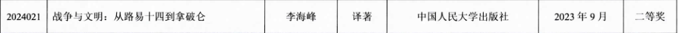 成果简介:本书2023年11月在重庆市翻译学会第七次优秀科研成果中获二等奖。该书作者克里斯蒂•皮奇切罗( Christy Pichichero )教授是乔治梅森大学历史和艺术史专业教授,人文与社会科学学院主任。主要研究领域为近代法国与法兰西第一帝国的文学和文化。现任法国历史研究学会执行委员会委员。译者李海峰副教授曾赴英国爱丁堡大学与南安普敦大学进行学术访问和交流。 在《中国翻译 》《外国语文》《翻译教学与研究》等学术期刊发表论文 10 余篇,编著教材 4 部。 主持中华学术外译项目 1项,参与 2 项。 在帕尔格雷夫•麦克米伦出版社 (Palgrave Macmillan)、世界科学出版社( World Scientific )、北京大学出版社和外语教学与研究出版社等国内外著名出版社出版学术译著 6 部。