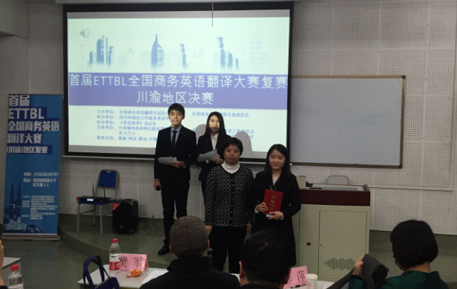 2016年1月9日,由全国商务英语翻译考试办公室和全国商务英语翻译专业委员会主办、明陞m88平台商务英语学院承办的首届ETTBL全国商务英语翻译大赛川渝赛区决赛在公司宏文楼举行。公司2014级MTI研究生贾代春同学参加了此次比赛,并荣获一等奖。