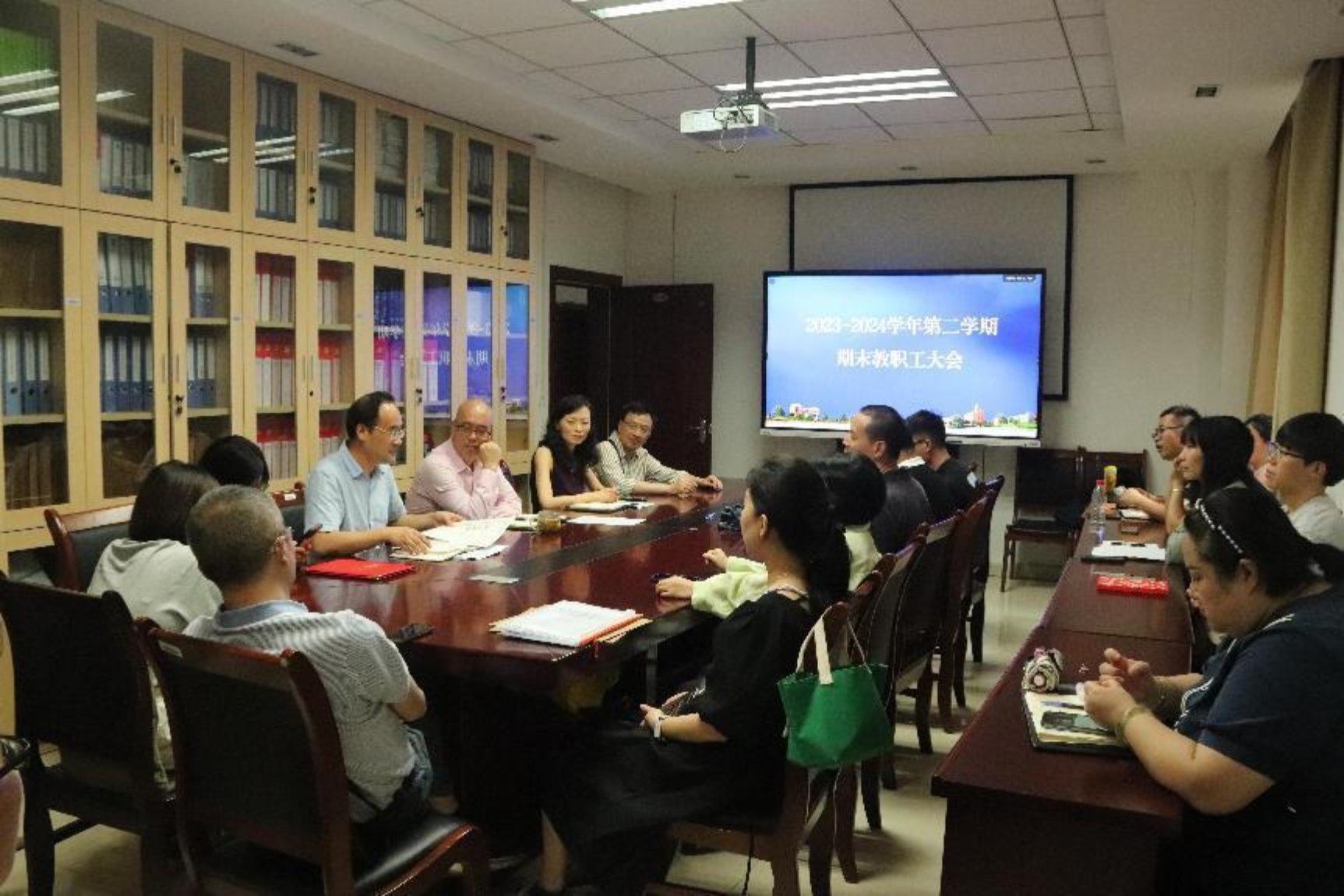 总支书记张丽从党建工作和员工工作方面总结学院本学期工作情况。她强调,要持续推进党纪学习教育走深走实,扎实做好“三全育人”工作,牢牢守好宣传思想文化阵地,强化师生思想引领,推动学院各项事业高质量发展。