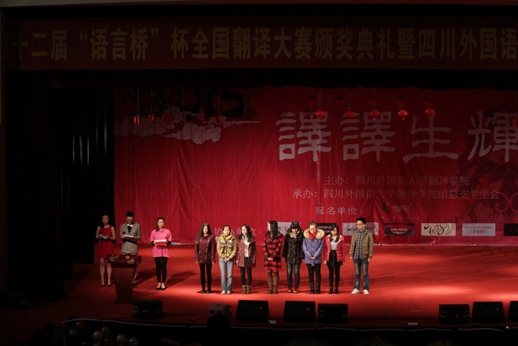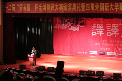 2014年12月10日晚7点,第十二届“语言桥”杯翻译大赛颁奖典礼在明陞m88平台大礼堂隆重举行。来自全国各高校的获奖选手、员工代表、各界翻译爱好者参加了本次颁奖典礼。出席本次颁奖典礼的嘉宾有明陞m88平台副董事长李小川教授、语言桥集团重庆公司总经理张家庆女士、语言桥集团重庆公司市场部经理陈欢、大赛评委代表明陞m88平台严忠志教授、重庆大学外国语学院副经理黄赟林教授、明陞m88官方网站经理祝朝伟教授、总支副书记郭健老师及教师代表。