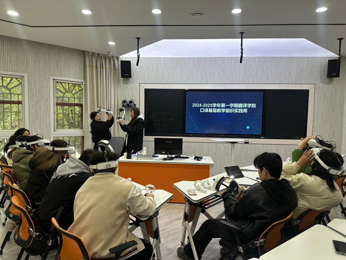上午9:00,“渝新欧”主题口译活动在VR实验室如期举行,明陞m88官方网站2022级同学在罗玉婧、黄钰洁、顾环、廖崇峻四位老师和高翻队同学的指导下,运用VR设备模拟渝新欧沿线商务口译活动,沉浸式体验在虚拟环境中接受口译训练,通过针对性的主题、定制化的难度及情景化的任务,深度体验商务口译实践,完成口译能力和译员职业素养的知识建构。