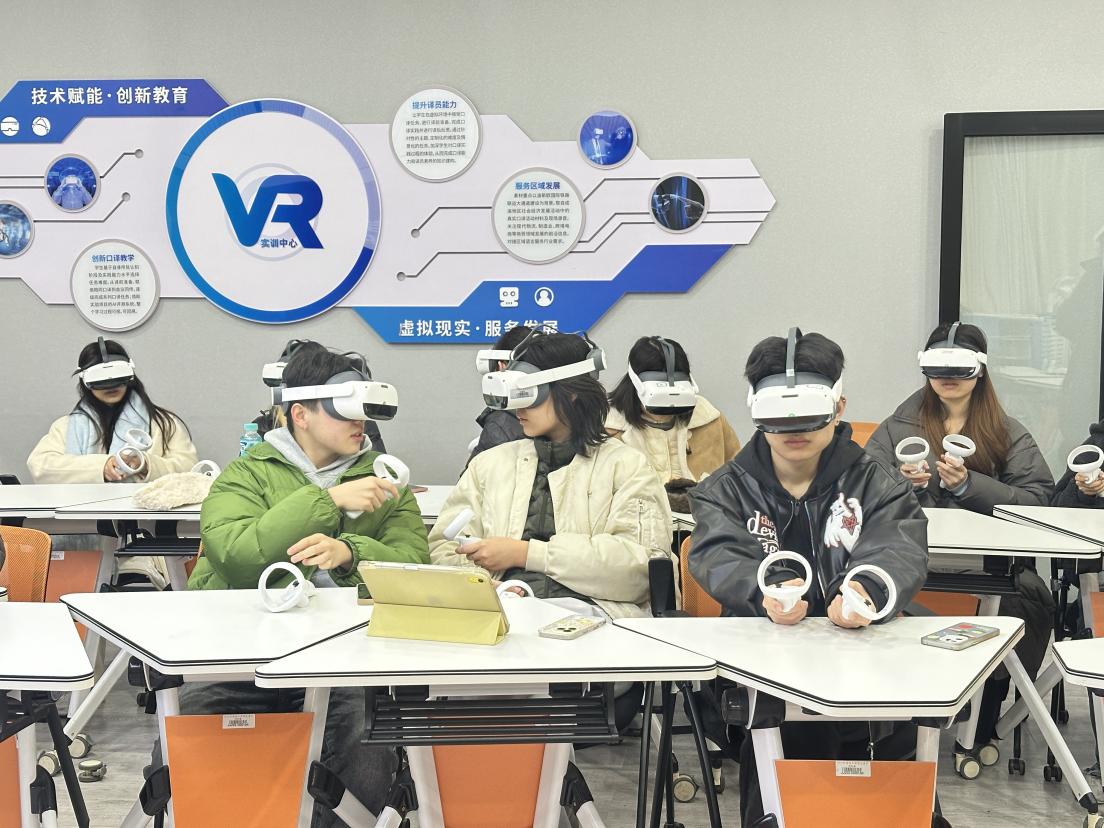 2024年12月23日,明陞m88官方网站口译基层教学组织开展了渝新欧主题VR口译实践体验活动,为同学们搭建了运用VR训练口译技能,提升专业能力的平台。