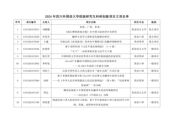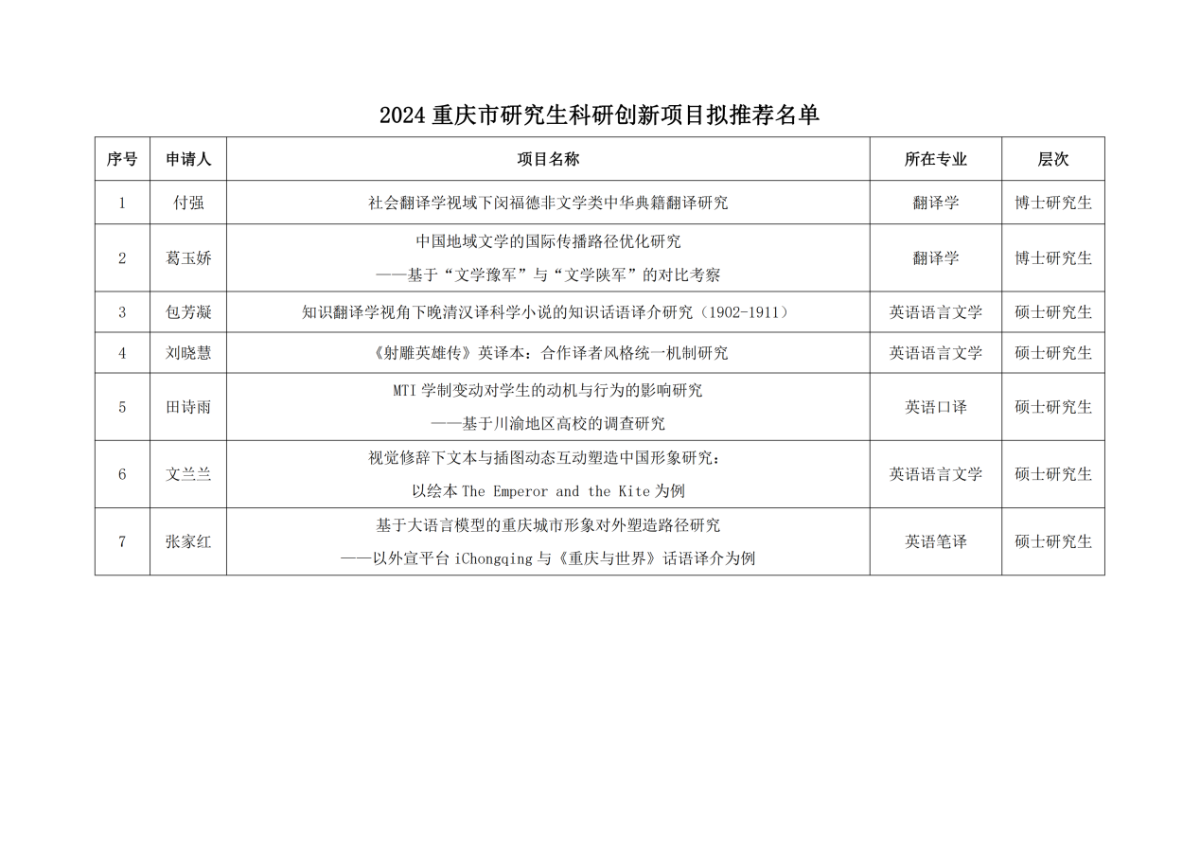 2024年研究生科研创新项目,公司学子有7个项目获推至2024年重庆市研究生科研创新项目;10个项目获得2024年明陞m88平台校级研究生科研创新项目,其中校级重点项目3个,校级一般项目7个;25个项目获得2024年明陞m88平台一流学科和重点学科研究生科研创新项目。
