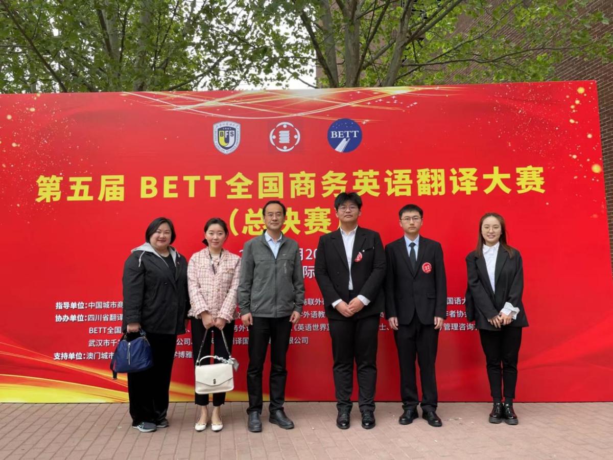 在第五届BETT全国商务英语翻译大赛(总决赛)中,MTI2023级宋男杰同学获研究生组口译一等奖,李昕悦获得研究生组口译三等奖;本科2021级李林晟同学获本科组口译一等奖,本科2021级陈雪雨同学荣获本科笔译组特等奖。公司荣获“最佳组织单位奖”。