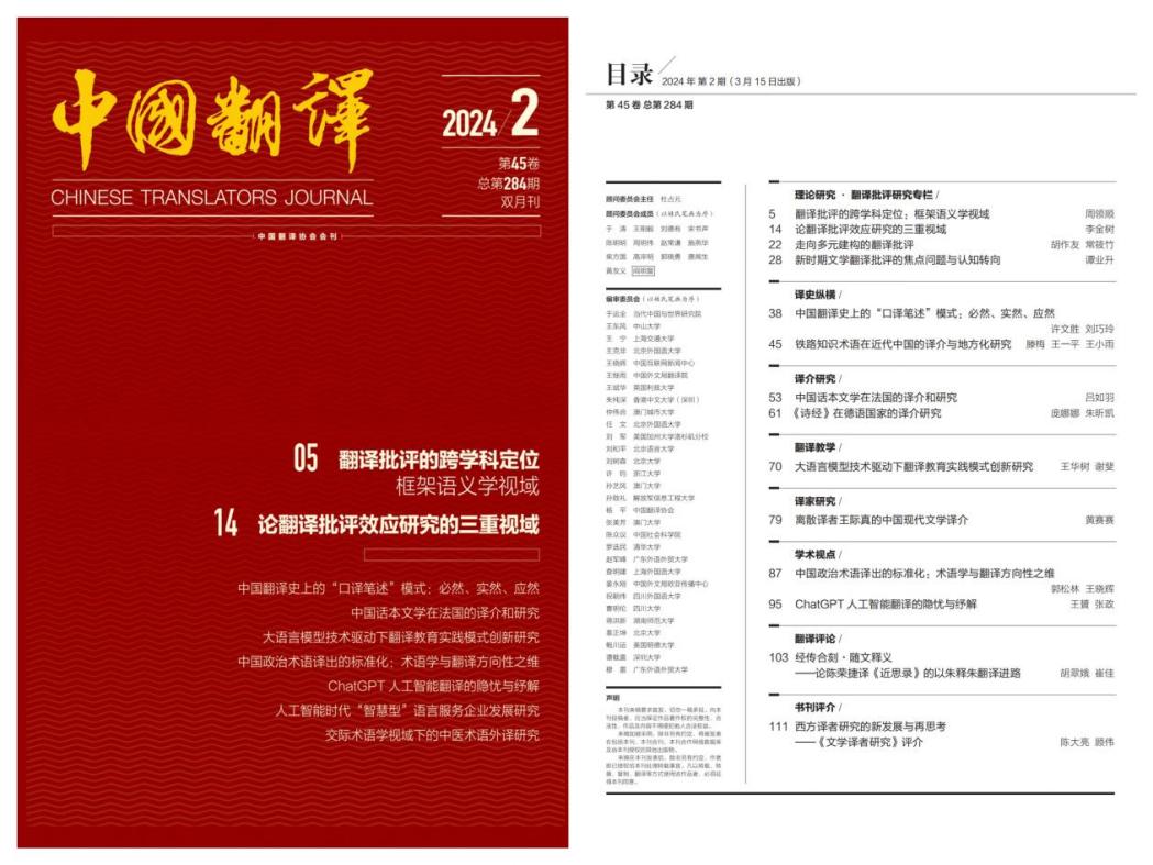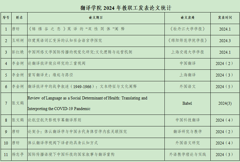 公司教师在《中国翻译》《Babel》《上海翻译》等期刊共发表学术论文11篇。