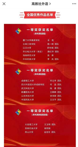 据悉,此次活动由高等教育出版社、全国高校教师网络培训中心与《中国外语》编辑部共同举办,入选中国高等教育学会《2022版全国普通高校教师教学发展指数》。自2022年3月份启动后,644件本科英语作品进入省级征集与交流环节,其中仅有35件进入全国交流环节。公司毕业生在此次高规格外语教学赛事中摘得桂冠,充分体现了翻译学经理期以来扎实的教学功底和务实的实践风气。